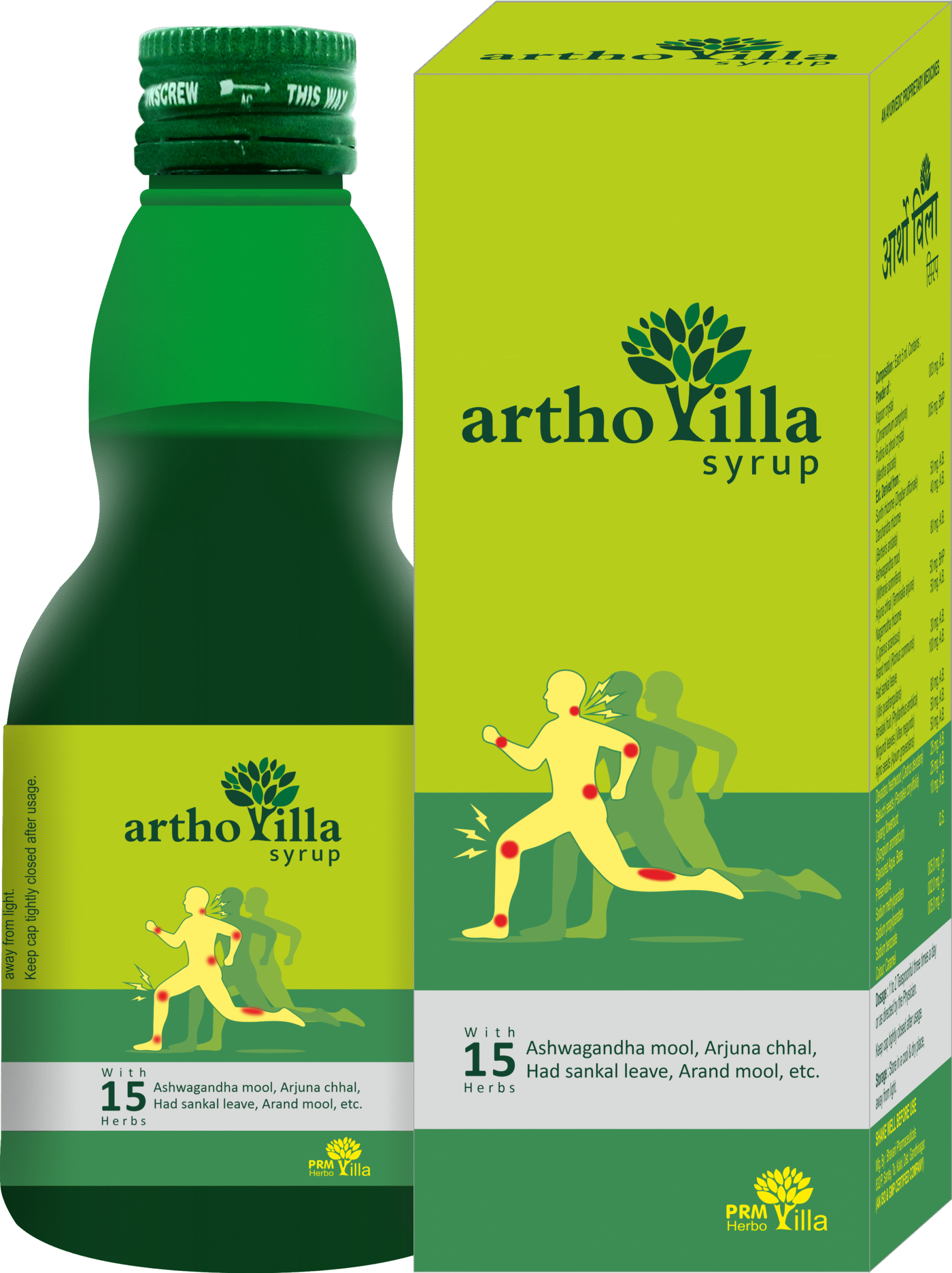 PRM Artho Villa Ayurvedic Arthritis Syrup is a natural herbal formulation developed to help manage joint pain, stiffness, swelling, and inflammation associated with arthritis and related musculoskeletal conditions. It combines time-tested Ayurvedic herbs that support bone and joint health, reduce joint degeneration, and enhance mobility over time.