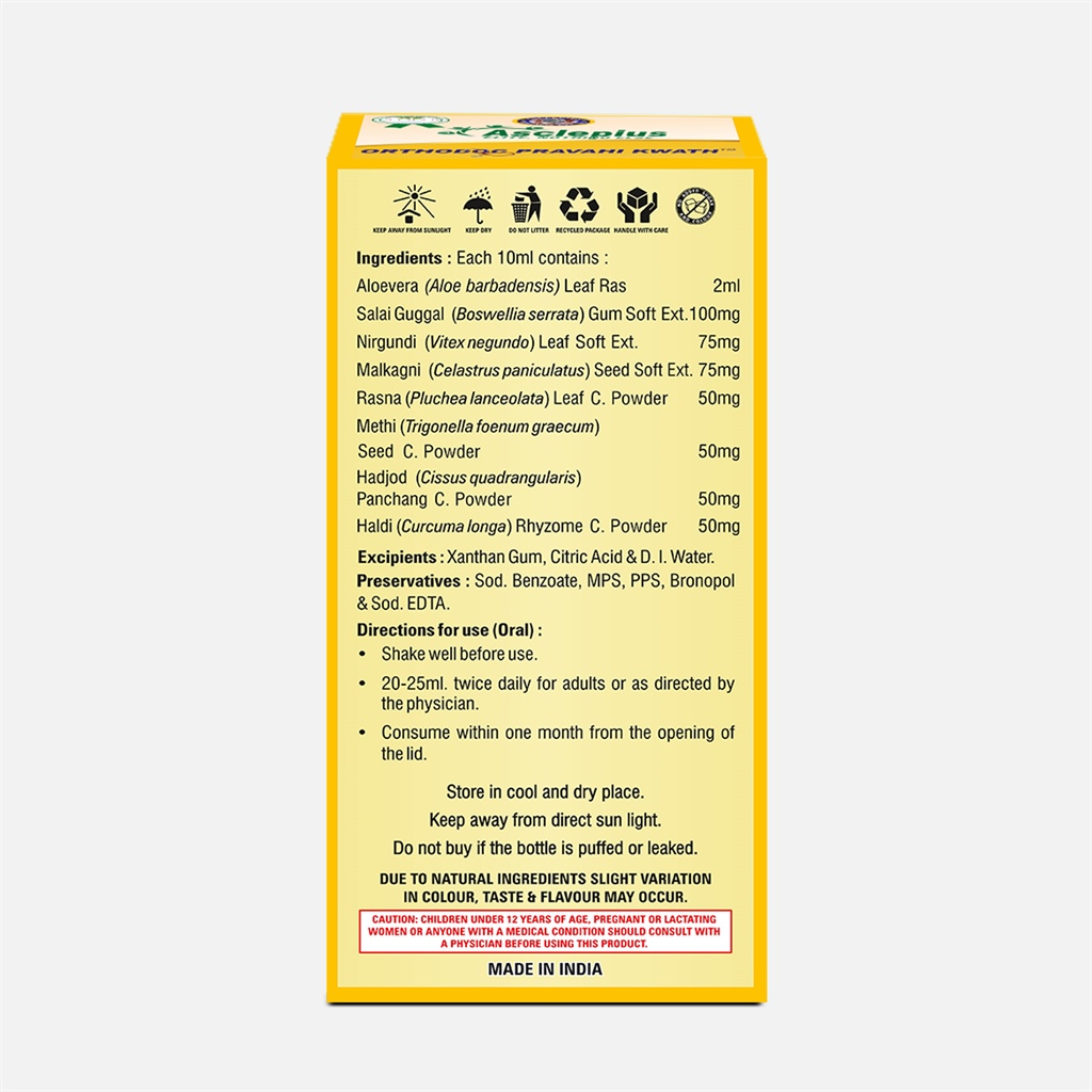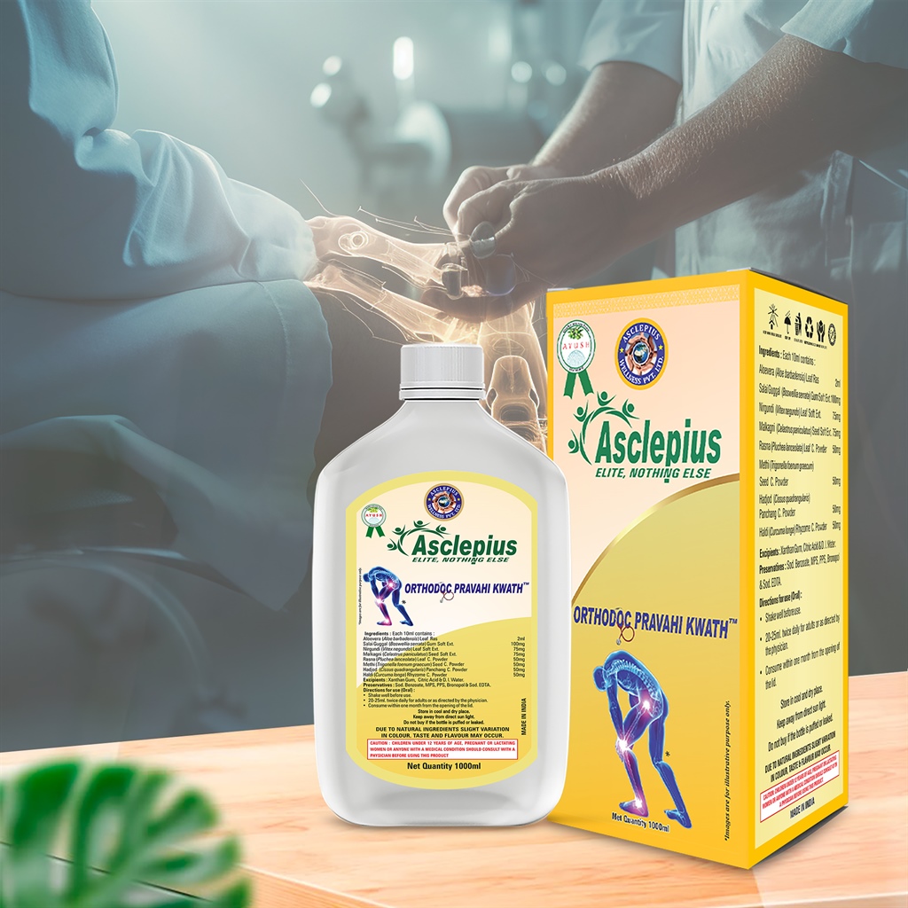 Asclepius Orthodoc Pravahi Kwath is a herbal remedy designed to support bone and joint health. With a rich blend of traditional Ayurvedic herbs, it helps relieve joint pain, stiffness, swelling, and inflammation. This formulation is suitable for individuals experiencing arthritis, back pain, knee pain, or age-related bone issues. Regular use may help improve mobility and flexibility in a natural and effective way.