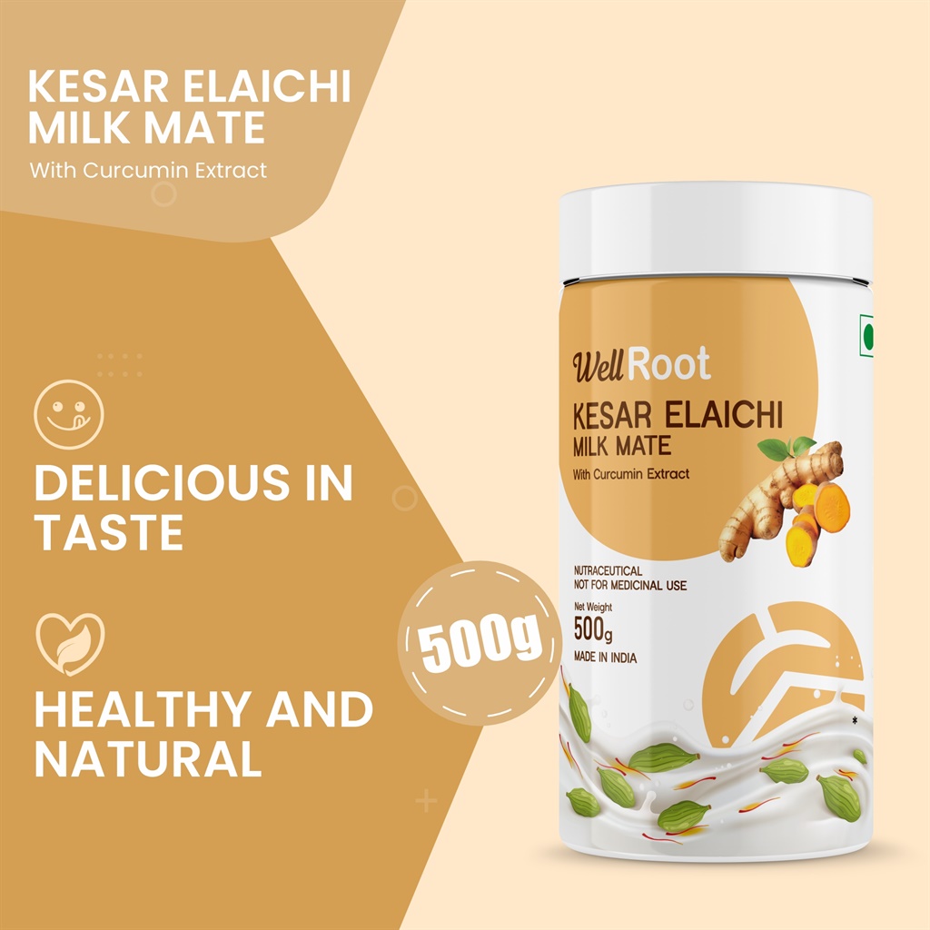 Asclepius Wellroot Kesar Elaichi Milk Mate is a flavorful and healthy milk enhancer that combines the rich aroma of saffron (kesar) with the soothing taste of cardamom (elaichi). Specially formulated using natural ingredients, it not only improves the taste of milk but also boosts its nutritional value.