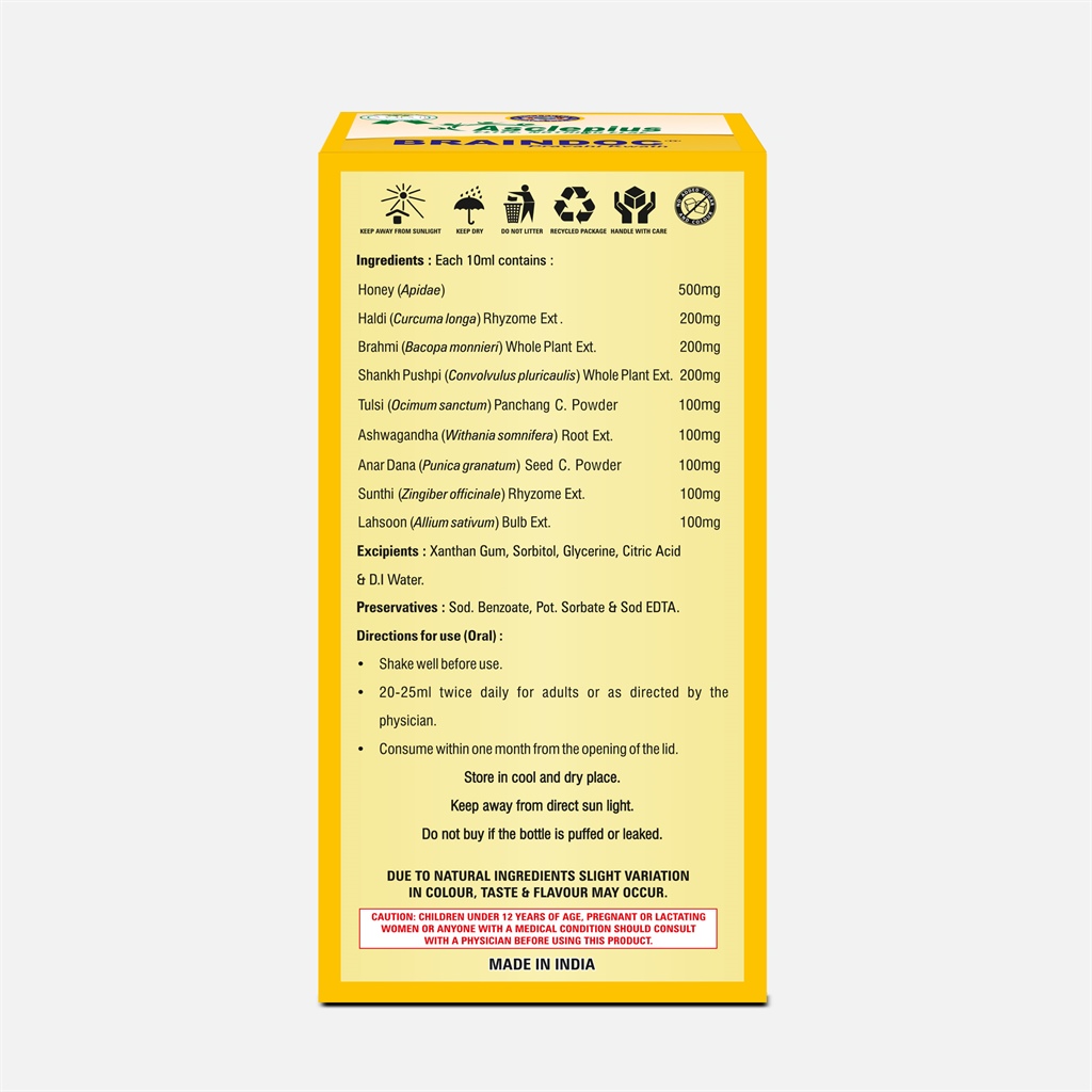 The herbs in Braindoc Pravahi Kwath act as natural brain tonics and adaptogens. Brahmi and Shankhpushpi help improve memory and concentration, Ashwagandha reduces stress and strengthens the nervous system, while other supportive herbs enhance blood circulation to the brain for improved cognitive function.