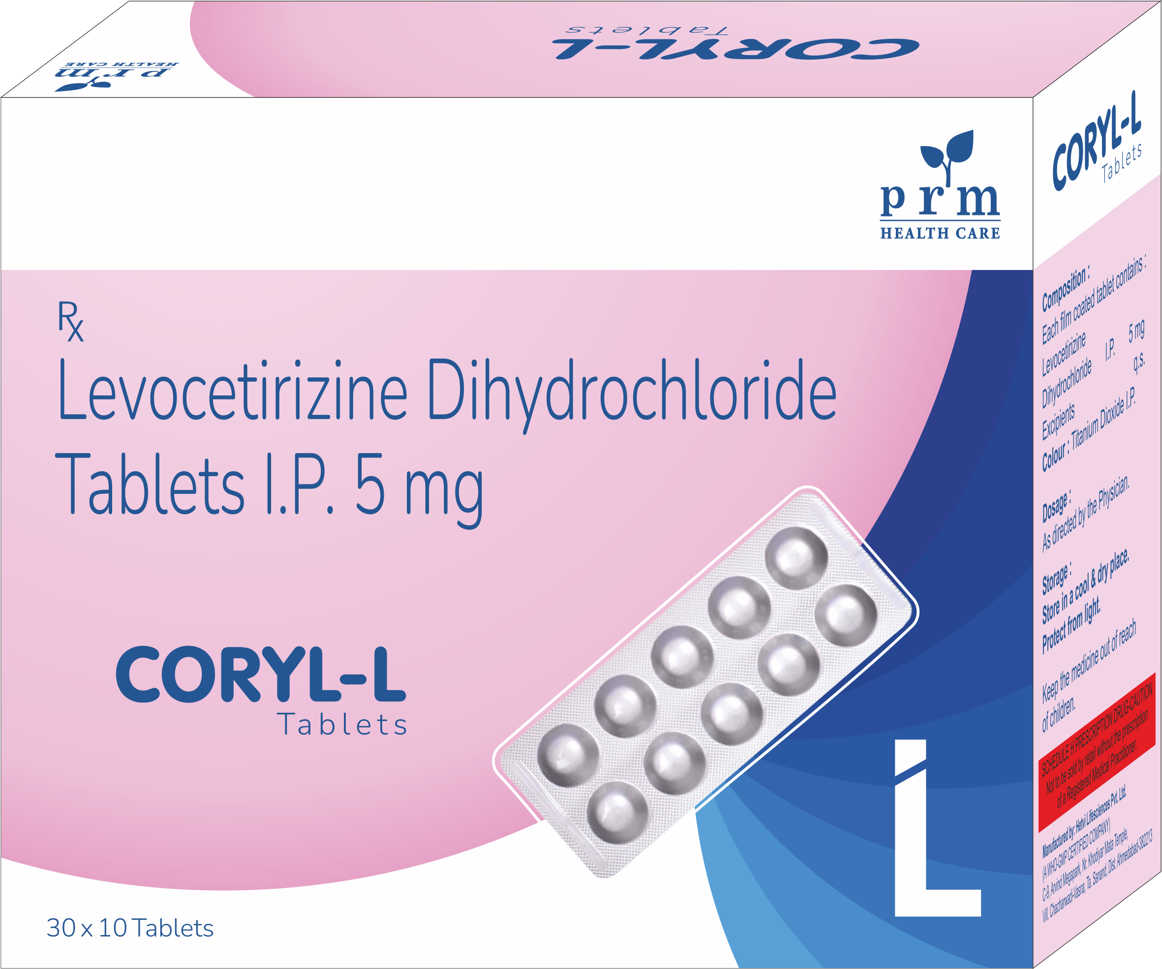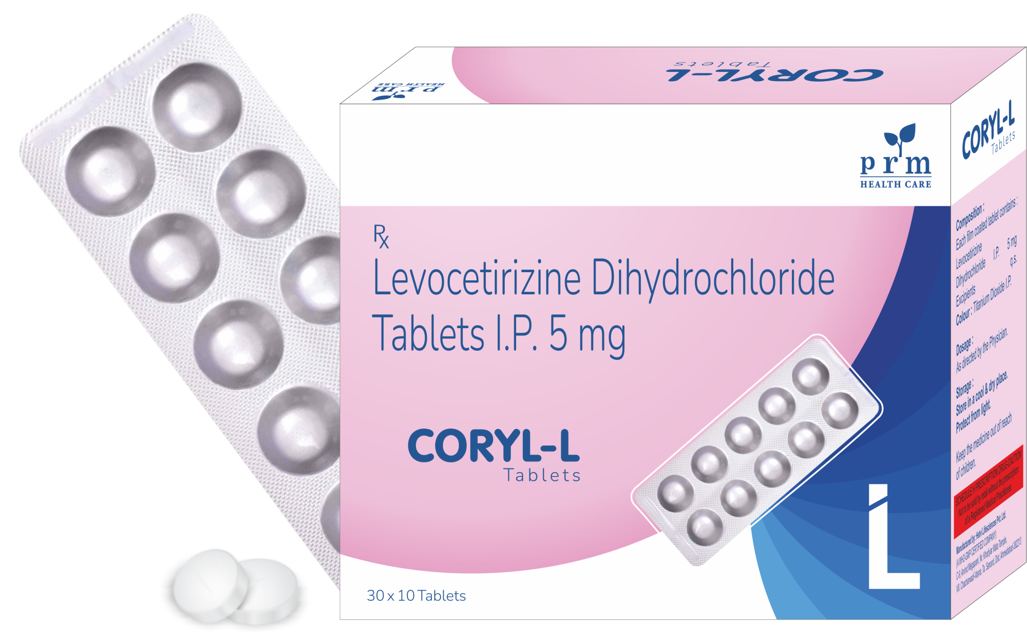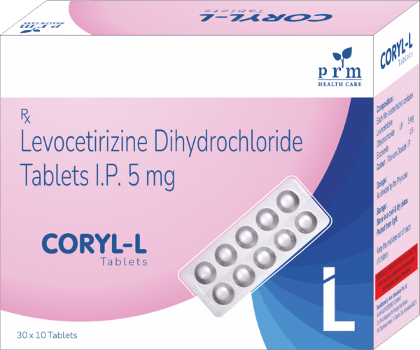 Coryl L Tablet is a dual-action anti-allergic medicine that provides long-lasting relief from allergic symptoms like sneezing, runny nose, nasal congestion, itchy or watery eyes, and throat irritation. It is especially effective in treating allergic rhinitis, hay fever, and even mild asthma triggered by allergens.