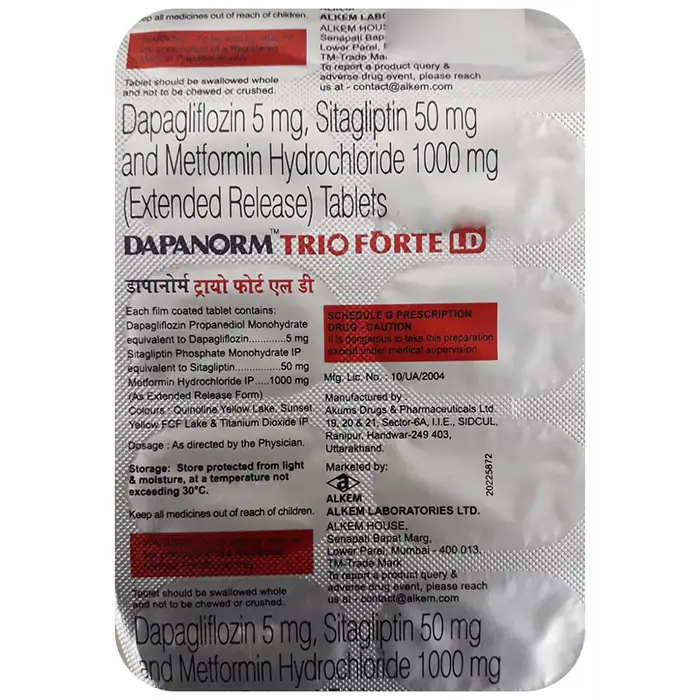 This combination helps patients achieve better blood sugar control, especially when single or dual therapy is insufficient. Along with a proper diet and exercise regimen, Dapanorm Trio LD reduces the risk of complications like kidney damage, heart disease, nerve problems, and vision loss.