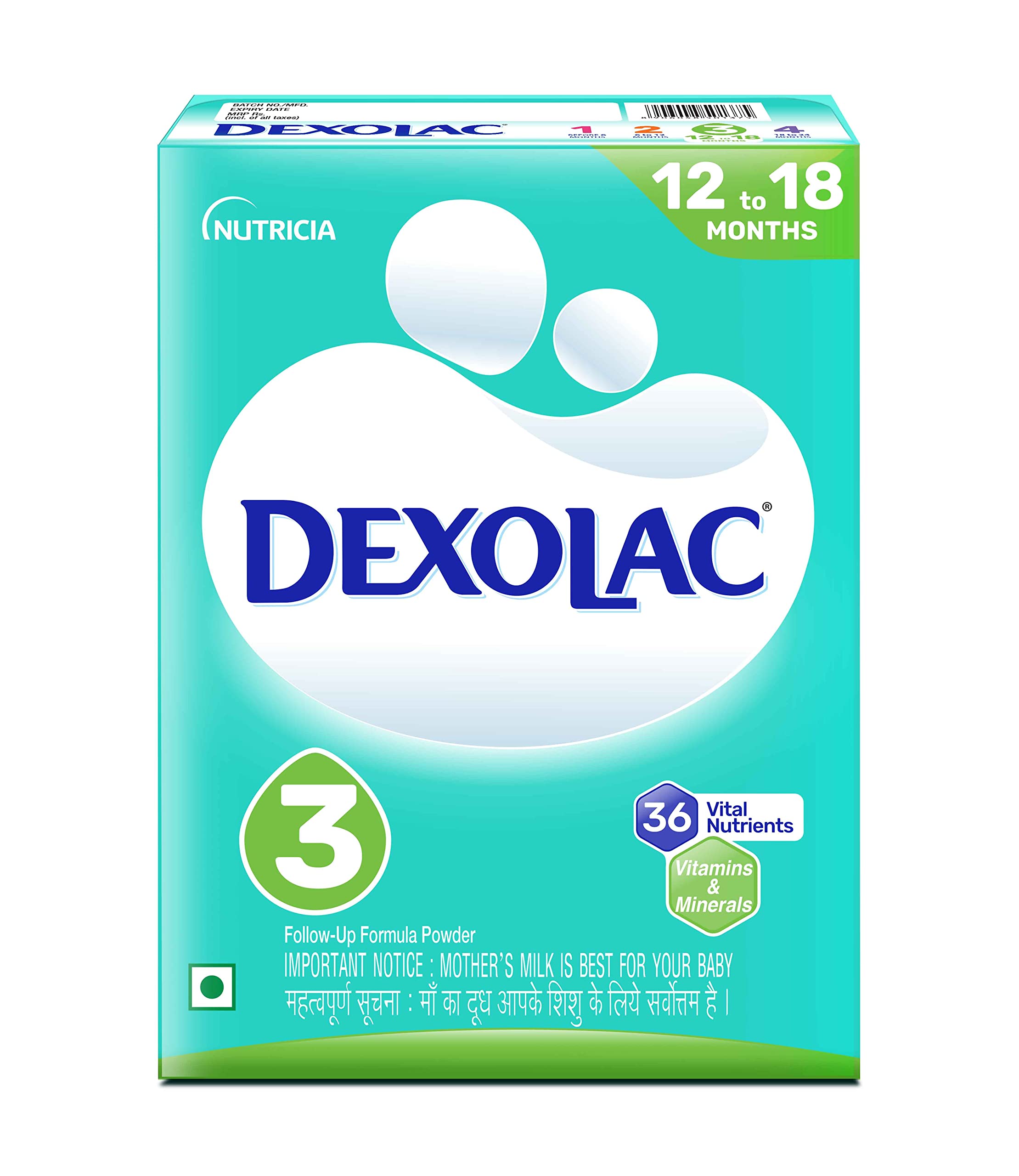 Mix 8 level scoops of Dexolac 3 powder with 240 ml of clean, lukewarm water. Feed three times a day or as advised by your pediatrician. Always use a clean spoon and ensure hygienic preparation.