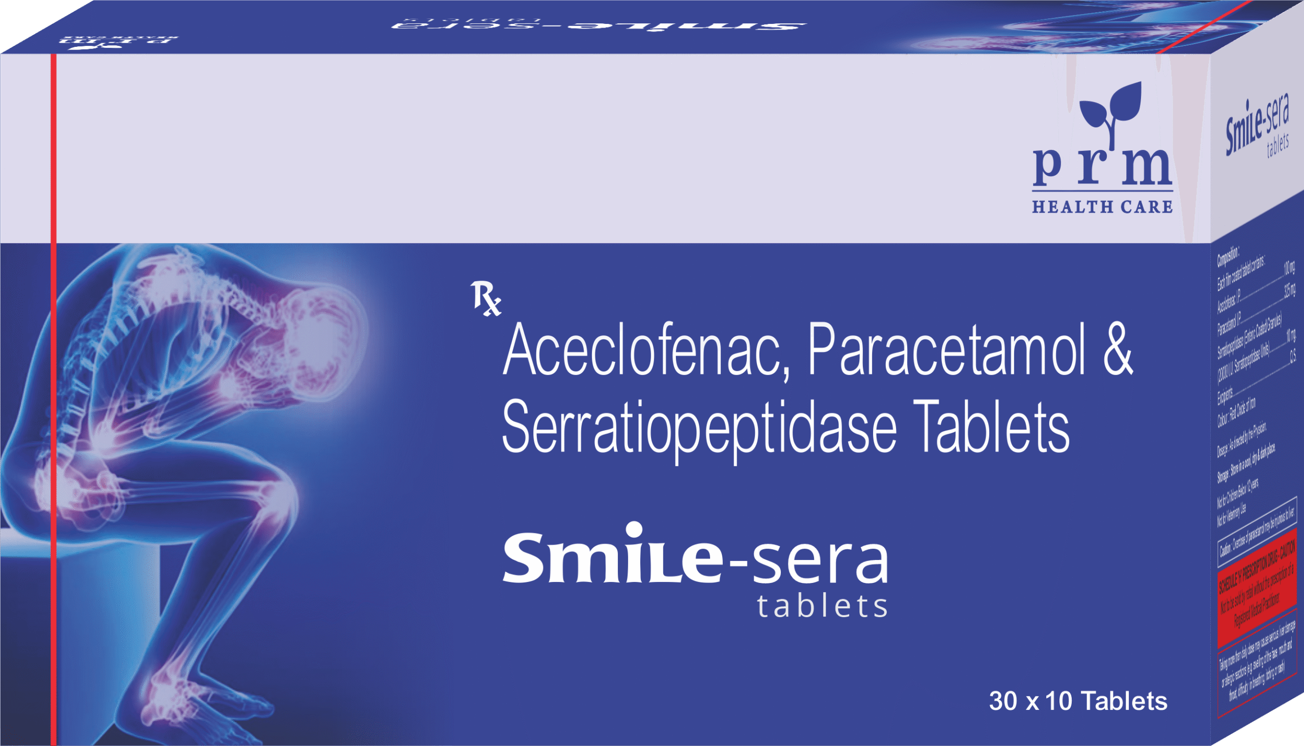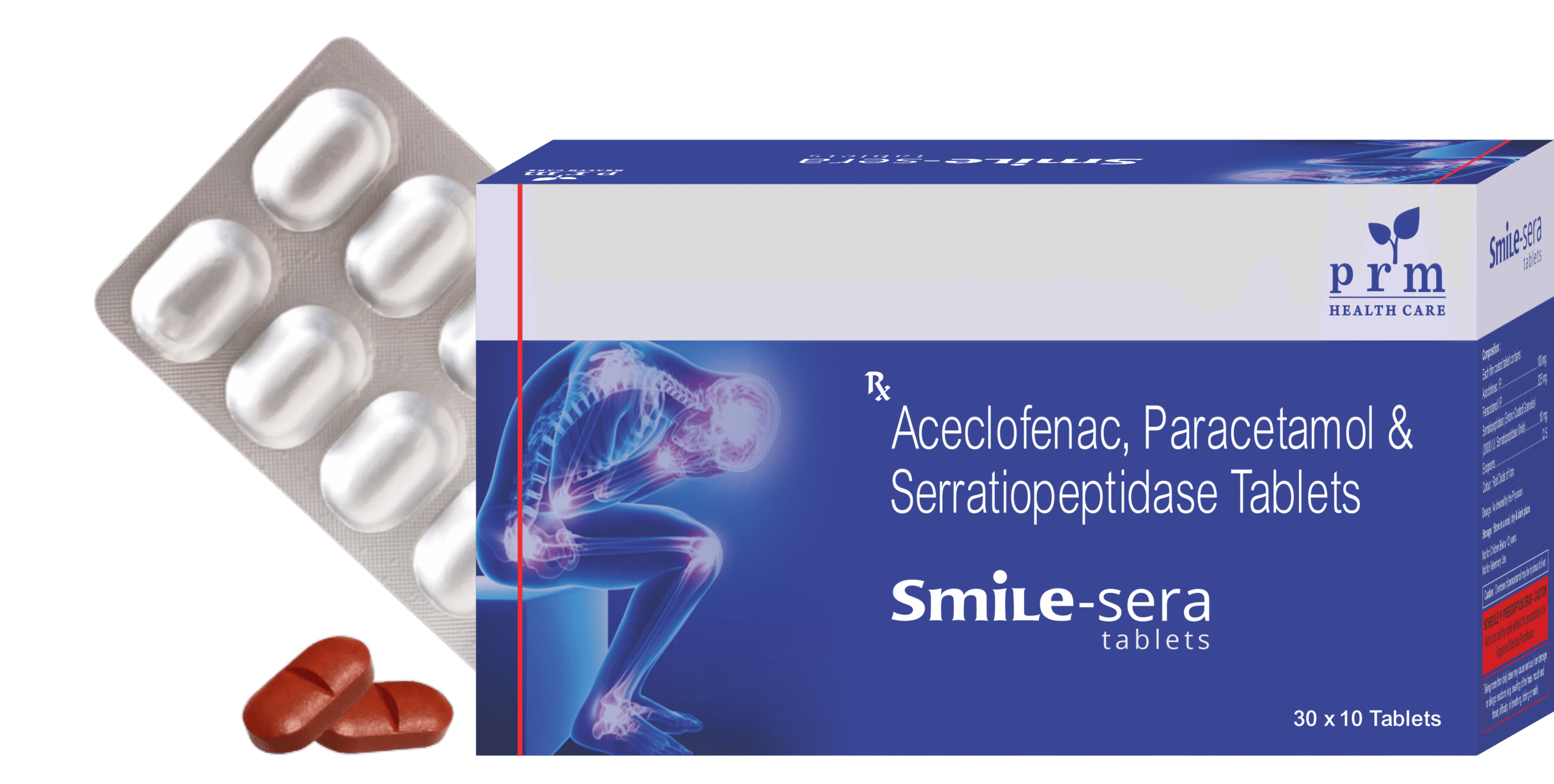 Smile Sera Tablet is a powerful combination medicine used to relieve pain, inflammation, and swelling associated with various conditions like muscle injuries, joint pain, dental pain, and post-surgical recovery. It combines three well-known ingredients that work together to control pain and promote faster healing.