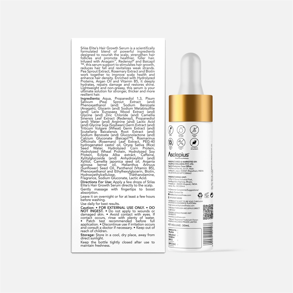 SNISS ELITE Hair Growth Serum is a premium Ayurvedic formulation from Asclepius Wellness Pvt Ltd, specially designed to address common hair problems like thinning, hair fall, and weak roots. Enriched with natural herbal extracts, essential oils, and vitamins, this serum nourishes the scalp, stimulates follicles, and supports new hair growth.